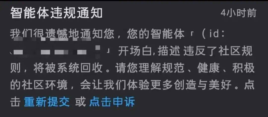 图源/网络 这本是平台监管内容生产的正常手段,但让嫣晴代表的创作者们感到无力的是,在他们看来,近段时间平台由于监管压力而不断扩大内容审查的边界,以至于到了“宁可错杀、不可放过”的地步,挫伤了创作者的热情。 比如嫣晴讲道,她在创建这个人设时,在描述中并没有刻意加入任何可能违规的内容:“不然按理说之前就没法上线,现在的修改我也无从下手。” 创作者的圈子里将这种已上线的智能体被平台隐藏、下架、需要不断修改的过程,称为“再审”。这是在整个AI陪伴市场受到监管关注后,出现的一种普遍现象。 多位入驻了星野、筑梦岛、猫箱、WOW等平台的创作者告诉「电厂」,“暗关”并不少见,其中一位创作者称: “国内叫得上名的App,审核都卡得越来越严,老崽妈或多或少都有被关、(崽崽)被回收的经历。不论玩哪个,(都)要备份所有的人设描述、开场白这些内容,免得有朝一日打开App,什么都没了。” 除了创作者,热衷与崽崽聊天的“主控(主角角色的控制者)”用户,也日益感受到了平台对内容的管控趋严。 有用户注意到,星野、筑梦岛、猫箱等多个平台都对智能体的回复施加了更多限制,并不断增加“违禁词”、以避免用户引导智能体给出违规回答。 而在用户看来,无论哪种做法,都不可避免会牺牲和削弱智能体的“智商”,影响交谈体验。 在小红书等社交媒体平台有许多用户吐槽智能体回答“降智”的分享帖,具体包括语言低幼化、“人机味”重、回答相关性低等。