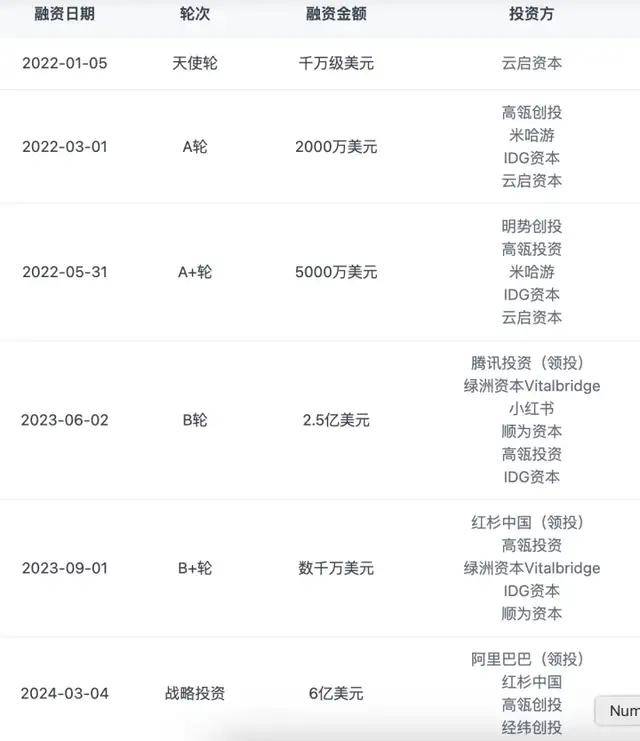 图源:《招股书》 MiniMax联合创始人、负责To B商业化的副总裁魏伟已于2025年年初离职,他曾在腾讯云和百度智能云担任要职。 据《新浪财经》报道,MiniMax的企业业务基本采取“自然流量”模式:有客户上门咨询就对接,但并未主动建立庞大的销售团队,大多通过开放API接口实现交易。这种“轻交付”策略一方面控制了成本,但也导致B端客户拓展有限。 MiniMax副总裁刘华坦言:“2025年MiniMax的目标是提升模型的推理能力,使其进入更多严肃的生产和研发场景。” 目前,MiniMax研发的通用大模型“ABAB”据称是国内首个Mixture-of-Experts (MoE)架构的大模型,已为金山办公等企业提供API接入方案,用于文档生成、会议纪要、数据分析等办公场景。 B+C端共同发力的情况,MiniMax营收快速增长,公司2023年营收仅346万美元(约为人民币2464.4万元),2024年激增至3052万美元(约为人民币2.2亿元),2025年前九个月已达到5344万美元(约为人民币3.8亿元)。 营收加速增长的同时,MiniMax亏损额也在持续攀升。2022年、2023年、2024年以及2025年前三个季度,MiniMax的年度亏损分别为7370万美元、2.69亿美元、4.65亿美元及5.12亿美元,近四年的累计亏损约为13.2亿美元(约合人民币92.9亿元)。 02 阿里、腾讯、红杉投资, 共享资本盛宴 MiniMax的融资与上市之路,堪称中国AI独角兽高速发展的一个缩影。 在2022年初全球AI投资尚处低谷时,早期投资机构云启资本,便基于对生成式AI未来的判断,果断完成了对MiniMax的首笔投资。 随后,公司的融资进程随着技术突破和“百模大战”的开启而加速:在2022年发布第二代模型后,云启资本不仅连续加注,还有IDG、米哈游、高瓴创投也同样加入。 进入2023年,资本热度显著升温,MiniMax完成了两轮融资,吸引了阿里巴巴、腾讯等互联网巨头,以及红杉中国、高瓴创投等顶级财务投资机构入局,其中红杉中国将此项目列为在大模型领域投资金额最大的项目之一。 2024年3月,阿里巴巴领投了高达6亿美元的B轮融资。融资步伐在上市前夜仍未停歇,2025年8月,公司完成了约3.9亿美元的Pre-B++轮融资,投后估值超过42亿美元,为其IPO奠定了最后的基石。据IT桔子统计,自成立以来,MiniMax已累计融资超过9.2亿美元。