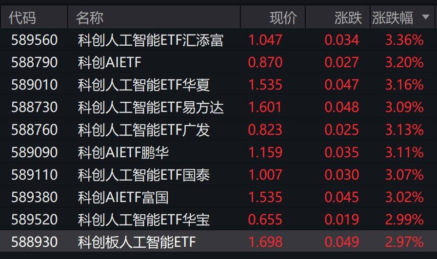AI概念股走高,科创人工智能相关ETF涨约3%